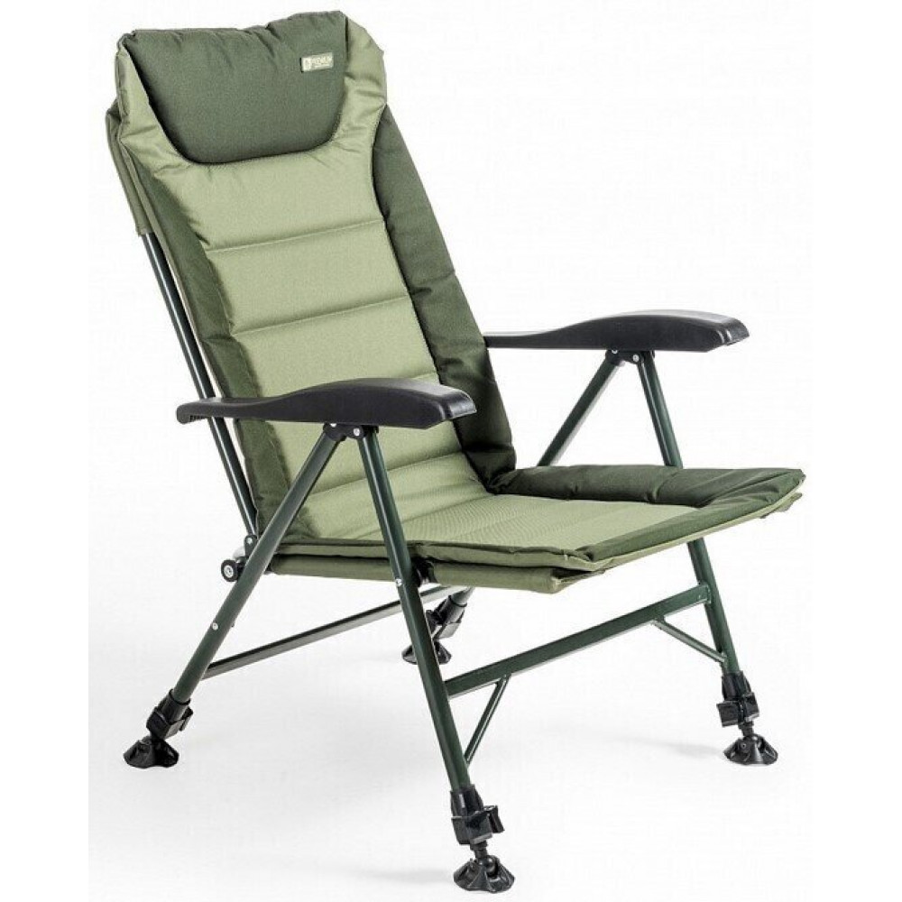 Компактна версия на популярното кресло Comfort Quattro с изключително здрава стоманена рамка с товароносимост 175 кг. Положението на облегалката може да се регулира, като повдигнете подлакътниците и наклоните облегалката в желаната позиция. Капакът на матрака е изработен от здрав и издръжлив P-POL 600D найлон, който лесно се пере. Креслото е снабдено с нови брави за крака, изключително проектирани от Mivardi. Лостът за заключване може да се управлява чрез стъпване или просто натискане с ръка. На всеки крак има качествен люлеещ се кален крак.