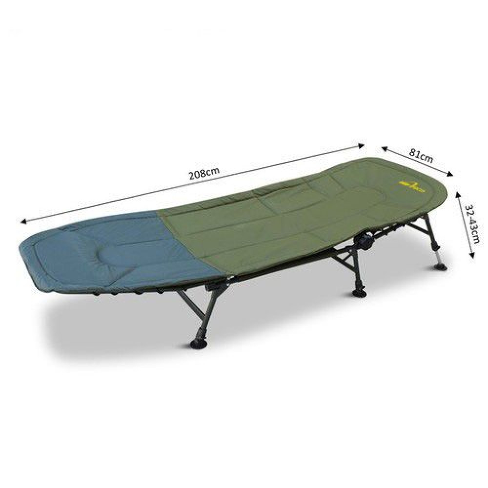 Шаранджийско легло с компактни размери за улеснено съхранение и транспорт. Изработено е от качествен 600D Oxford полиестерен плат и е подплатено изцяло. Разполага с шест крака с регулируема дължина и широки лапи против мек терен. Система за промяна и регулиране на наклона.