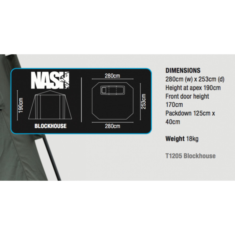 Тази шатра е изработена върху доказаната конструкция от модела Gazebo Bank Life, без никакво сглабяне. Патентованата конструкция е насочена към максимално лесно разпъване и усвояване на полученото вътрешно пространство. Nash Blockhouse осигурява максимален комфорт и височина за почти всички риболовци в зависимост от ръста им. Получаваме и допълнителна защита от гризачи, насекоми и влечуги благодарение на цялостното уплътнение Extreme HD и вътрешната камера против комари. Входната врата е с двуслойна конструкция, увеличена ширина и височина спрямо предходния модел.