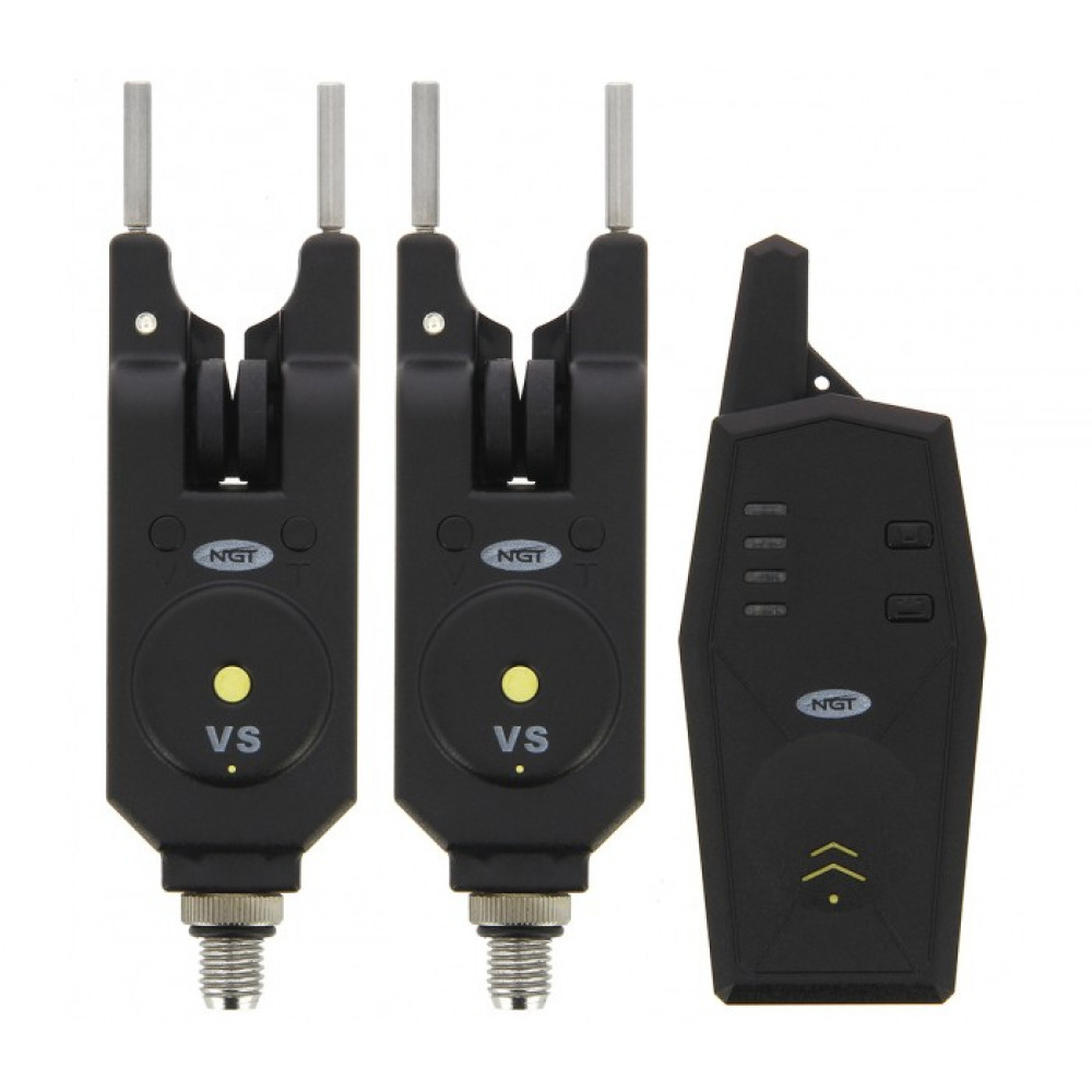 Сигнализатори NGT 2 pc Wireless Alarm And Transmitter Set са комплект 2 сигнализаторa с централа. Приемника e, направен от 4 степенна дигитална технология. Пълният комплект сигнализатори е снабден със снаг барове (2 къси и 2 дълги) и централа за предаване на сигнала. Батерии не са включени в комплекта!