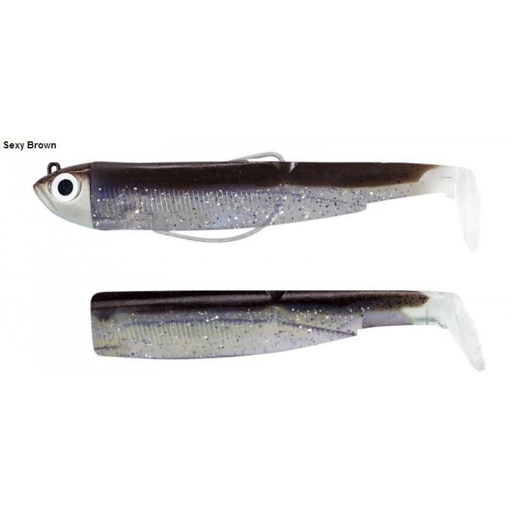 Fiiish Black Minnow Combo №1 - 7 см, 3 гр - включва един готов монтаж - глава 3 гр., кука, тяло и резервно силиконово тяло. Съдържанието е показано на снимката в ляво. Размерът е 7 см. Предлага се в цветове Kaki и Sexy Brown. За да се възползвате от други цветове, можете да направите комбинация от отделно предлаганите куки, глави и тела. Важно е да комбинирате един и същ номер.