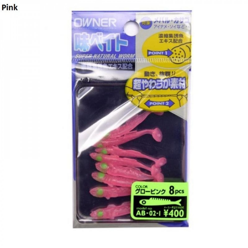Силиконовите риби за чепаре Owner AB-02-3 представляват малки силиконови рибки със светещи очи, предназначени за монтаж на чепаре и морски риболов. Подходящи за комбиниране със серията морски куки на Owner 6538 Worm BH-Sproat (изправена) и 6537 Worm BH-Round (закръглена).
