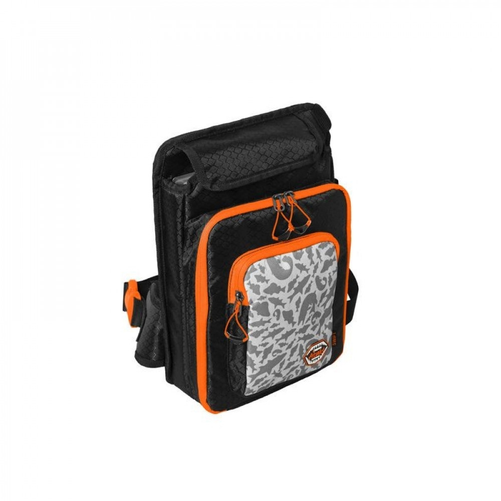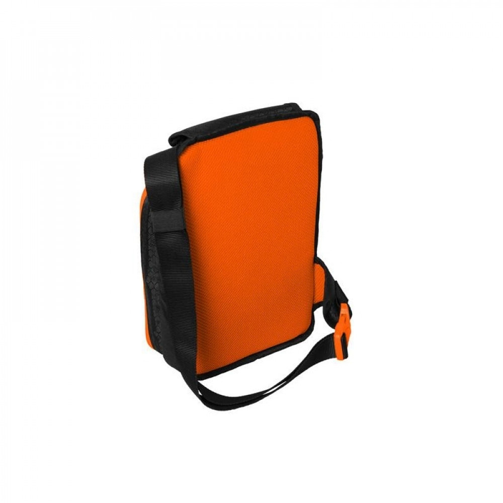 Спининг чанта Delphin Atak Swift е идеална чанта с компактен размер, проектирана за спининг ентусиастите. Нейното голямо предимство е, че можете просто да я завъртите отпред и да извадите всичко необходимо при смяна на примамката. Не необходимо да я сваляте от рамото си, като другите чанти.Swift се състои от един голям джоб, съдържащ една пластмасова кутия, който се затваря с Velcro лепенка. Пластмасовата кутия се предоставя като част от чантата и е оборудвана с регулируеми вътрешни прегради. Друг, по-малък джоб с цип, е проектиран за съхранение на вашите примамки. Той е проектиран така, че да даде възможност на рибаря да извърши бърза и удобна смяна на примамките. Този джоб може да бъде отворен само до определено положение, като от двете страни има зашит ограничителен плат. Освен това, в основата на джоба е поставен и магнит. Този интелигентен дизайн не позволява падане на компонентите. Едната страна на джоба има слой от по-плътна профилирана EVA пяна, където можете да поставяте воблери, спинери, блесни или изкуствени примамки. От вътрешната страна има малък джоб с цип, в който можете да съхранявате воблери, куки и др. Най-малкият джоб в предната страна е проектиран за съхранение на риболовни принадлежности, като куки и друго оборудване. Задната част е с подплата в оранжев цвят, която съответства на цвета на циповете. Презрамката е в черен цвят и е оборудвана с оранжева пластмасова скоба.Тази чанта за през гърдите е оборудвана с качествени оранжеви ципове. Механизмите на циповете са оборудвани с пластмасови фиксатори, с по-широко оранжево шнурче, което улеснява тяхното отваряне. Приложените оранжеви елементи правят чантата видима, дори и в тъмното, така че да не можете да я загубите. Чантата е изработена от лека, но устойчива черна материя.