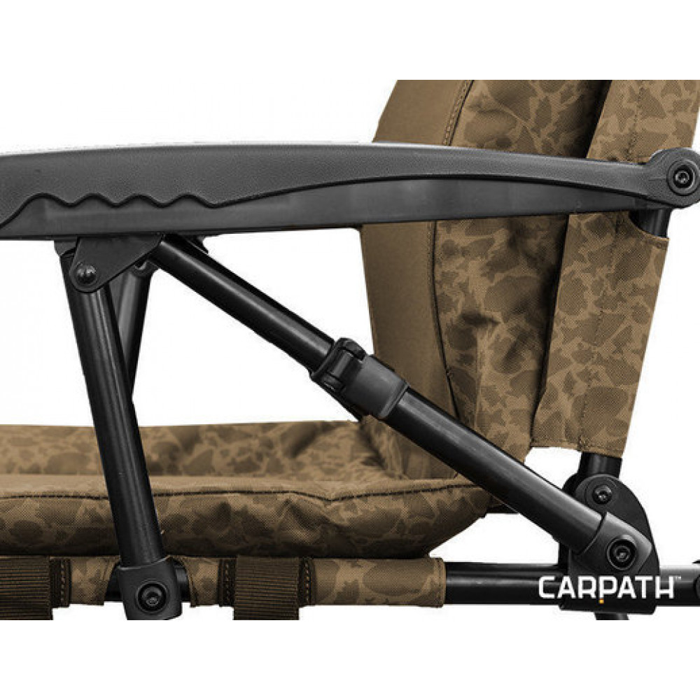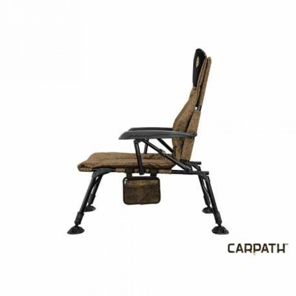 Бестселърът от Delphin с нов камуфлажен дизайн Carpath. Той е различен от повечето столове, които се предлагат на нашия пазар, тъй като RS има перфектно и ергономично изработена облегалка за гърба, благодарение на която гърбът няма да Ви заболи дори и след няколко часа чакане на рибата да клъвне. Подсилената облегалка за таза и бедрата допринася за перфектната стойка на тялото Ви и позволява на гърба Ви да си почине. Delphin RS е изработен прецизно във всеки един детайл. Можете да нагласяте облегалките за ръцете лесно и просто, като ги плъзгате. Тази семпла и надеждна система дава възможност да се променя позицията на облегалката за гърба без да се налага да ставате. Платът е наистина много устойчив на замърсяване и повреждане. Ако се случи така, че се повреди или зацапа, замърсяването може лесно да се почисти и премахне с помощта на четка и хладка вода. А това далеч не е единственото предимство! Задната част на облегалката за таза и бедрата може да се закопчее с цип и вътре могат да се поставят два нагревателя Delphin ARCTIC. Студените нощи повече няма да бъдат проблем, а тъкмо обратното – стоенето до водата ще се превърне в удоволствие със затоплен кръст. Тези нагреватели не са включени в комплекта. Естествено, перфектната и прецизна изработка е гарантирана с този необикновен стол! Така наречената UNIQ Bag чанта се поставя стола на едно ново ниво и е включена в комплекта. Тя е закрепена на вече направени конектори. Можете да сложите мобилния си телефон или документите си в нея. Благодарение на универсалните колани с велкро закопчаване можете просто да закачите чантата си на колана си или да я преместите върху конструкцията на леглото и да Ви е подръка по всяко време.