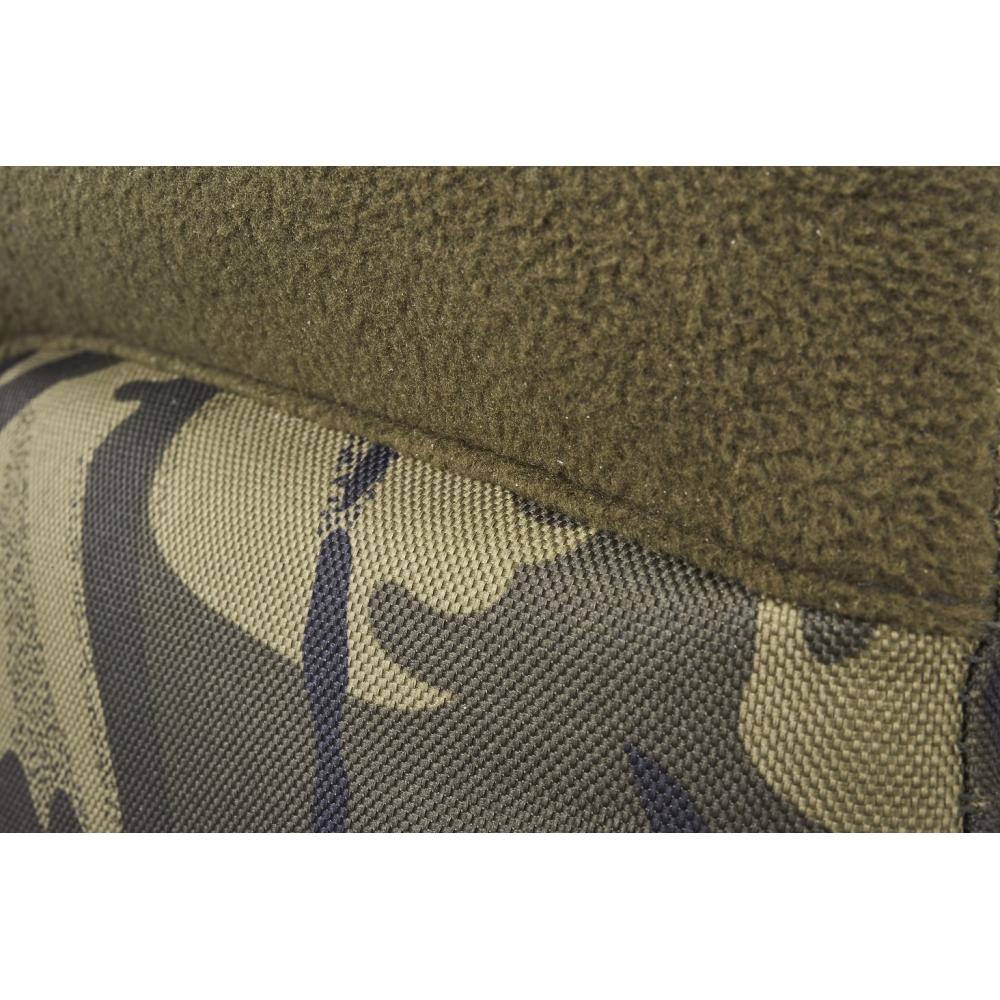 Голям, удобен и добре подплатен стол с подлакътници, които са обвити с полар за още по-голям комфорт. Конструкцията е от лек, но същевременно издържлив алуминий. Телескопични крака с широки лапи против мек терен. Наклона на облегалката се регулира посредством въртящ механизъм от двете страни. Атрактивен камуфлажен дизайн.