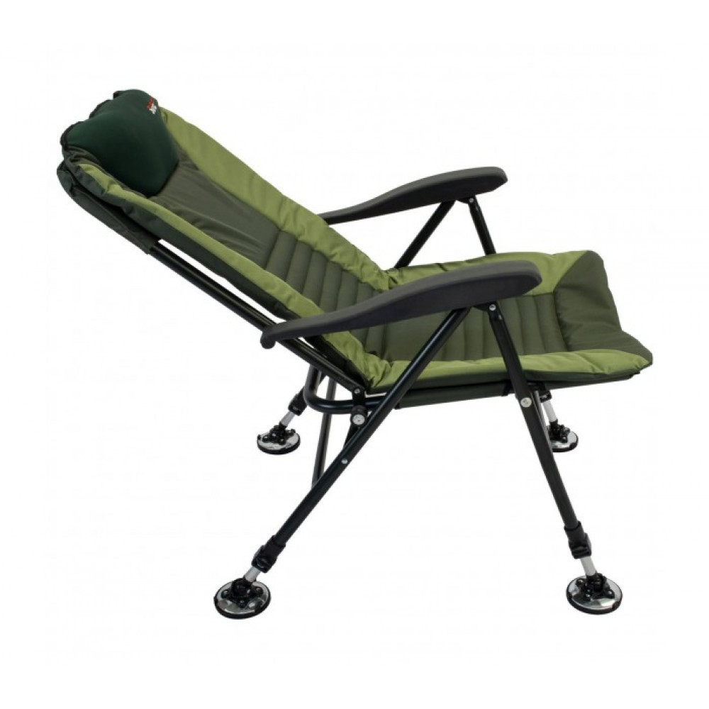 Лек, удобен и надежден стол с красив дизайн и много функции, благодарение на които наистина можете да се отпуснете по време на риболов. Suretti Therapy Carp Chair е със сгъваема конструкция и с възможност за бързо регулиране на позицията на облегалката посредством повдигане на подлакътниците. При сгъване се заема малко място, поради което може да се транспортира в багажника на кола или дори в обществения транспорт. Произведен от здрава метална конструкция и устойчив на износване плат и анатомично изработена облегалка. Облегалката е удобна и има възглавница. Therapy Carp Chair осигурява не само комфорт, но и надеждност, издръжливост и удобство при употреба. Препоръчва се не само на любителите на риболова, но и на тези, които предпочитат пълна почивка сред природата. Конструкцията на стола е много проста и стабилна, монтажът и демонтажът отнема броени секунди. Бързо регулиране на облегалка посредством специален механизъм в подлакътниците Телескопични крака за лесно позициониране върху всеки терен.Широки лапи против мека почва.Мека облегалка и седалка.