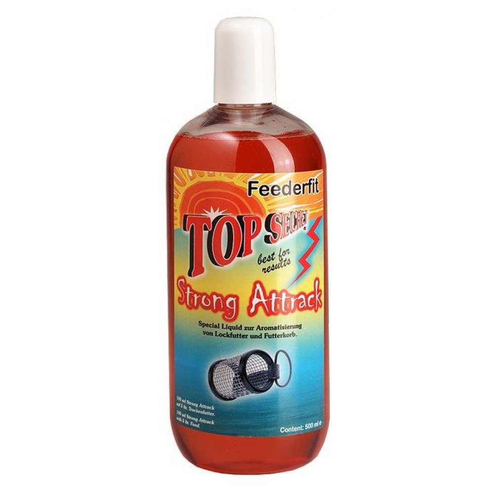 Top Secret Feederfit е силно подсладена течна добавка със супер качество и дълготраен аромат, предназначена за фидер риболов. Отличава се със силни ароматни качества и богати и наситени вкусови компоненти. Допълнително ароматизира и подобрява консистенцията на използвания микс за захранване. Образува облак около фидер хранилката и привлича рибите от голямо разстояние. Захранката се задържа в близост до дъното, привличайки големи риби точно на захраненото място. Подходяща за фидер риболов с кошнички и метод фидер хранилки.
