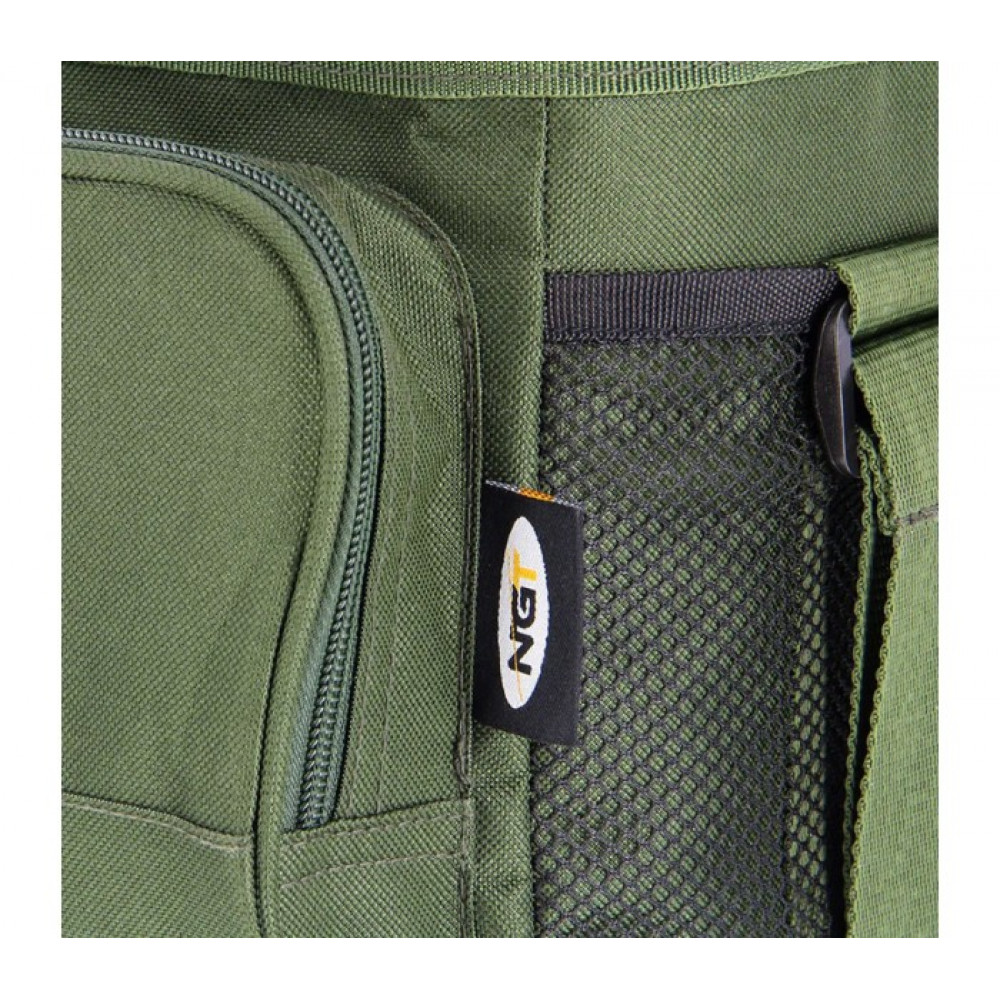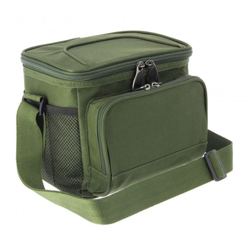 Изолирана чанта за храна и стръв. Притежава двойно основно отделение с цип, два еластични мрежести джоба, преден джоб с цип и регулируема презрамка. Идеална за самостоятелни излети, за да поддържа сандвичи и напитки перфектно охладени, или стръвта ви.