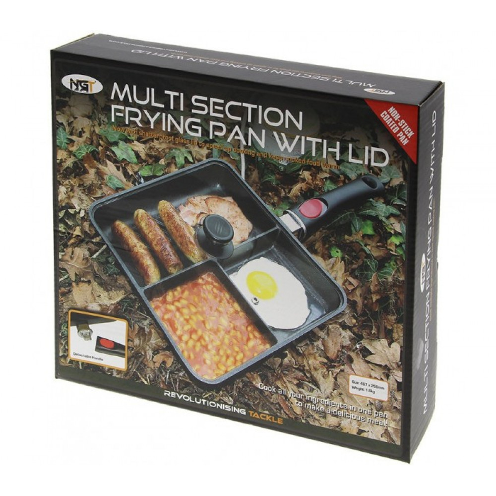 Новият NGT 3-степенен тиган за готвене по време на вашата риболовна сесия е вече тук ...и сега с капак! С трите си различни разделения този тиган побира всякакви продукти, които бихте желали да си приготвите. Снабден с демонтираща се дръжка за лесно съхранение. Дъното е изработено от висококачествено незалепващо покритие. Благодарение на новия си капак може да запазите топлината за по-дълго време.