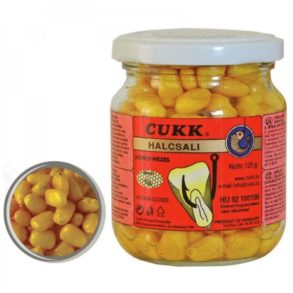 Риболовната стръв CUKK съдържа цели, ронени зърна царевица. Те се отличават с много добра твърдост и перфектна устойчивост върху куката. След риболов затваряйте внимателно капака на бурканчето, за да гарантирате трайност поне няколко месеца. Съдържа само естествени материал.
