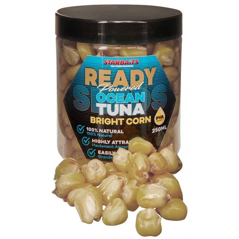 Предварително приготвена царевица за стръв, с наситен аромат и искрящ флуоресцентен цвят. Благодарение на новата технология на приготвяне, частиците успяват да запазят по-голяма част от хранителните си вещества, които се губят по време на обикновения начин на готвене. Ароматизирани с характерните компоненти от съответната серия. Не разгражда PVA!