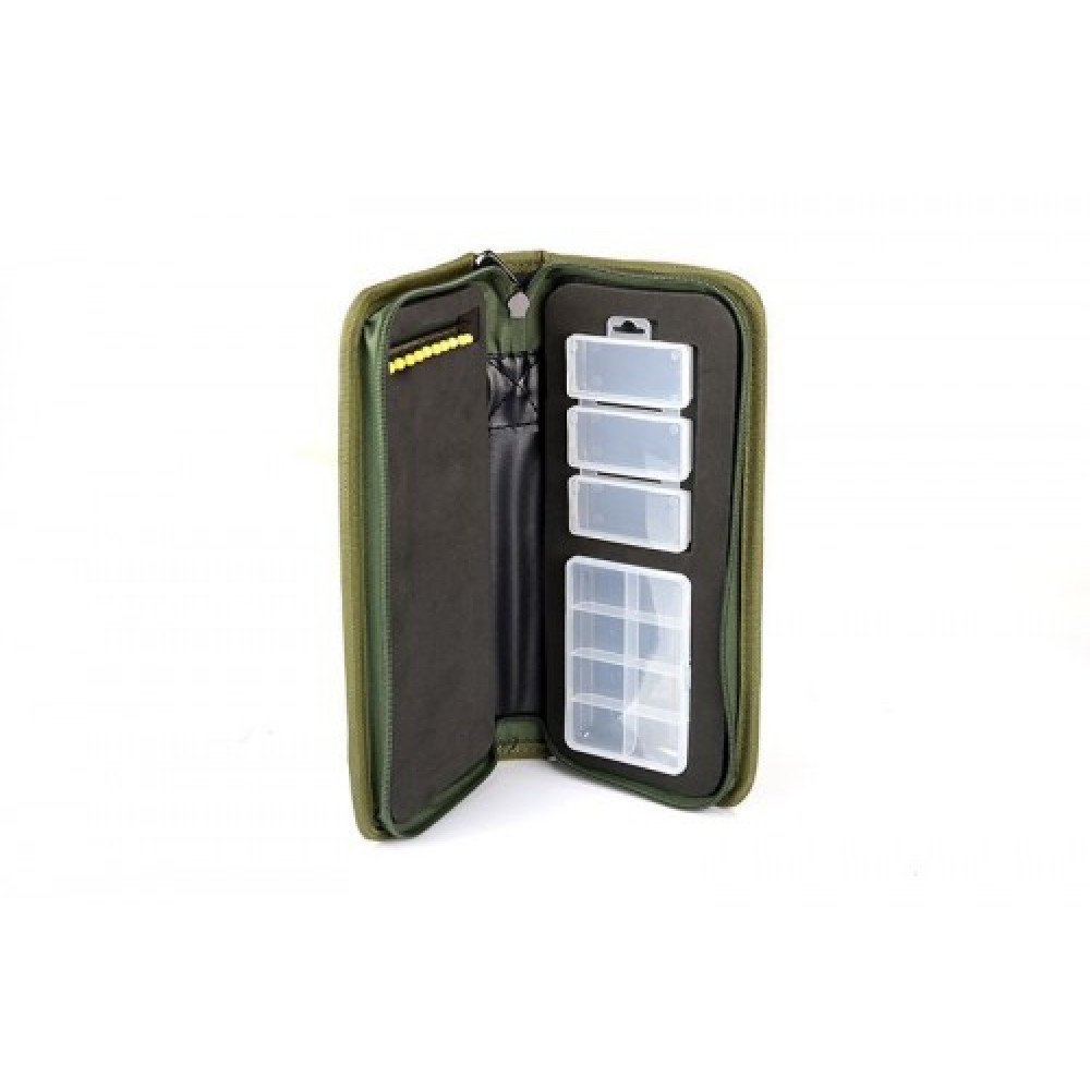 Качествен твърд класьор за шаранджийски готови поводи + 2 кутии за вирбели, куки, бързи връзки, стопери и други аксесоари.