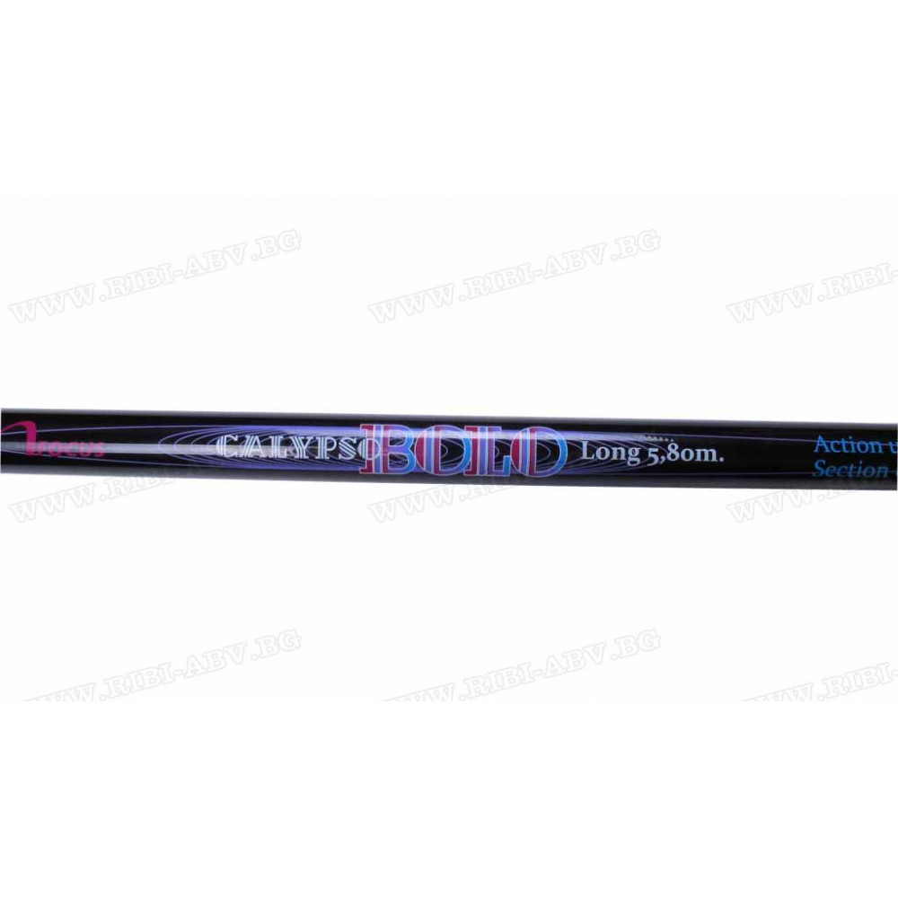 Calypso Bolo е изработена от Super High Modulus Carbon from " Toray" - Japan! Oтлична устойчивост и надеждност, изключително широко приложение за риболов на плувка. Притежава стегнат строй, върхова акция, отличен баланс и усещане в ръката на всеки риболовец. Предлага се само в една дължина - 5,80 м. Подходяща е за риболов в реки и затворени водоеми. Цeната е без конкуренция за болонезе от високия клас.