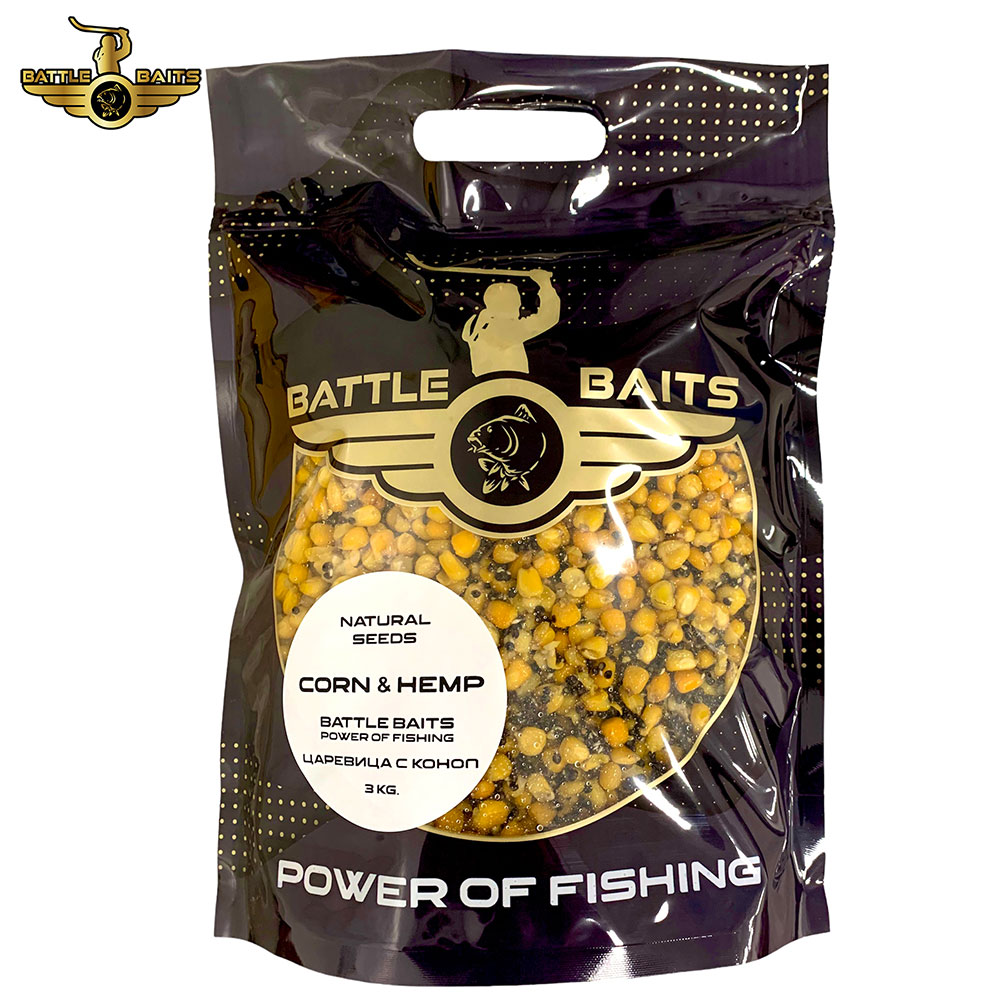 Варени семена царевица с коноп Battle Baits Corn & Hemp Seeds 3 кг