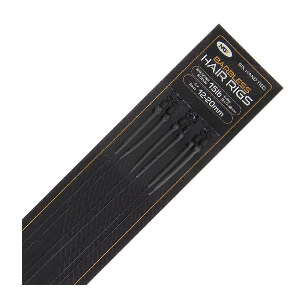 Вързани монтажи на косъм NGT са широка гама, ръчно вързани, шаранджийски монтажи на косъм с различни размери на куките. Снабдени са с противоуплитащ шлаух и размер на косъма за топчета от 12-20 мм.