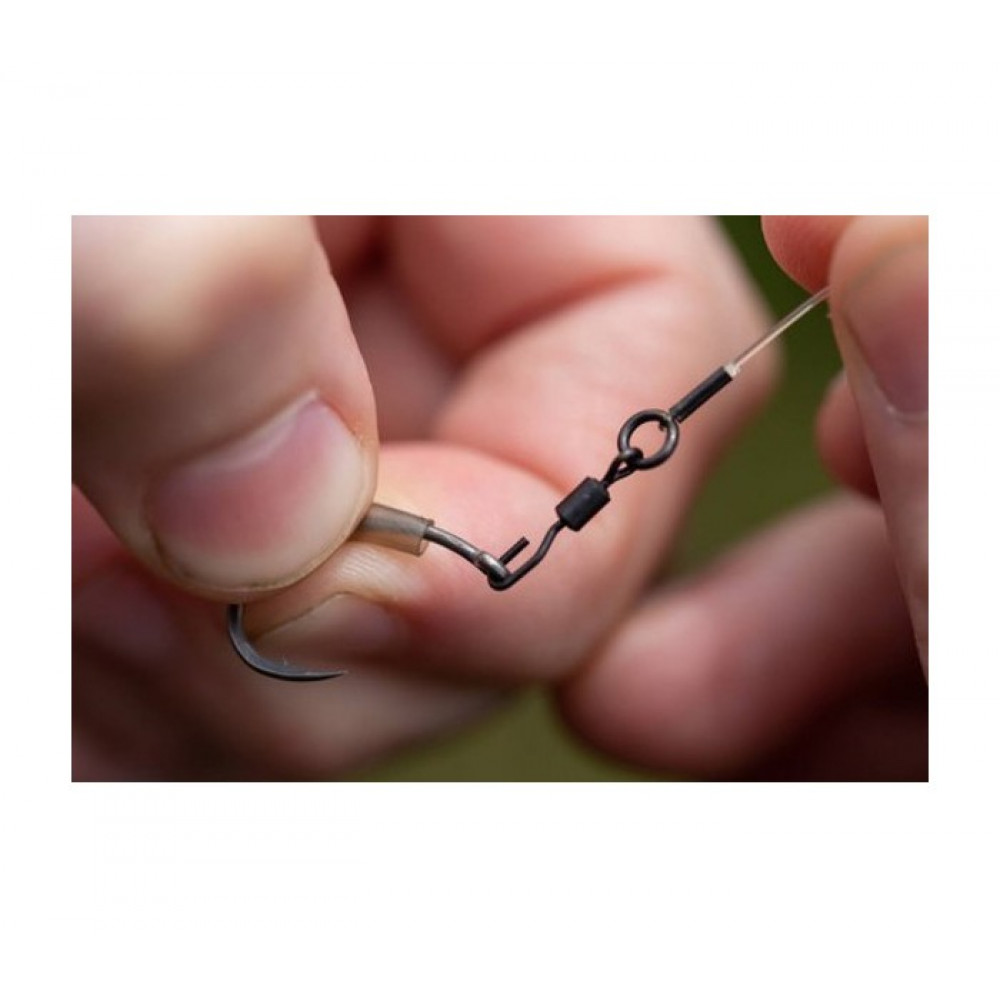 Spinner Ring Swivel са вирбели с халка и отворена бърза връзка за ronnie rig монтажи. Отворената бърза връзка позволява лесна смяна на куката, а тънкият профил прави монтажът фин и изпипан. Нанижете куката върху вирбелът и просто я покрийте с термо шлаух, за да стои винаги в правилната форма и ъгъл.