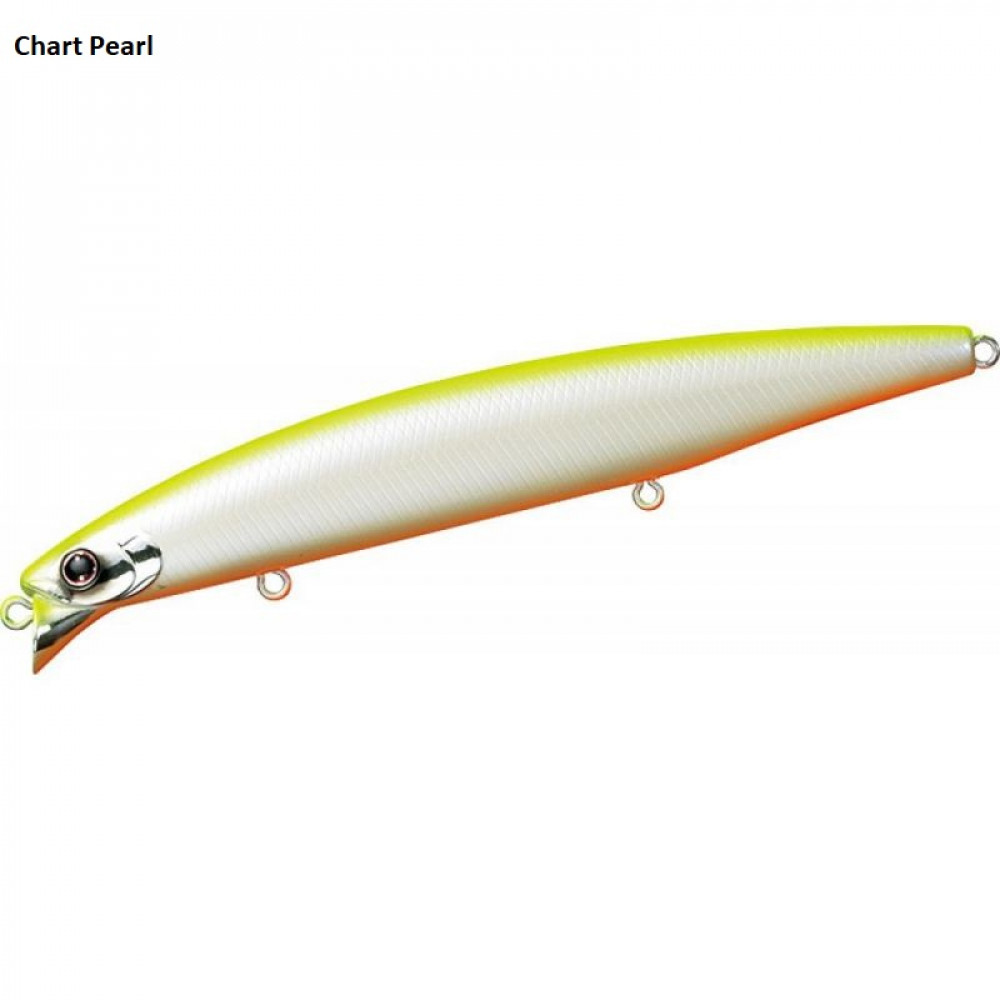 Воблер Daiwa Shore Shiner Z Vertice 120F - SSR е плаващ воблер с дълбочина на потапяне до 30 см. Подходящ за риби, които се хранят в горните слоевe на водата като лефер, лаврак, паламуд, дорадо, маятико. Бърз, безшумен и атрактивен, благодарение на патентованата Hold Gravity System за стабилност и идеална позиция на воблера. В тялото на примамката има вградена уникалната Silent Gravity Oscillation System за безшумно движение на тежестите по специалната тел в каналчетата на тялото и за изхвърляне на далечни дистанции дори при силни ветрове, като материалът, вложен в изработката на тежестите е волфрамов, което спомага за безпроблемния кастинг. Има изключително жива и реалистична игра, перфектен баланс и качество на изработка. Изключително ефикасен модел за морски риболов.