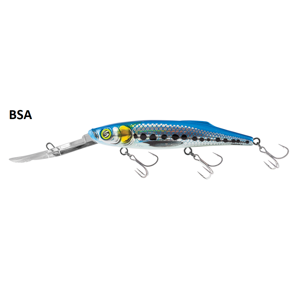 Колко често си мислите за риболов в екстремно дълбоки води? Поемете въздух, вече ще можете да го праткикувате по-лесно от всякога! Salmo Freediver Super Deep Runner (SDR) е еднакво ефективен независимо дали го използвате за кастинг или тролинг. Най-добрият начин да откриете специалните възможности на примамката е просто като я пробвате. Когато Freediver 12 се използва с плетено влакно 0,16 и се влачи със скорост 3.2 км/ч 35 метра зад лодката, успява лесно да достигне дълбочина от 9 метра. С увеличаване на разстоянието между примамката и кърмата на лодката, се увеличава и дълбочината на газене. Като резултат от това, примамката може да достигне невероятните 12 метра дълбочина, ако се държи на разстояние 60 метра от кърмата. Този резултат е недостижим от други примамки със сходни параметри на пазара. Freediver също притежава ефективна кастинг система, която позволява наистина далечни замятания с традиционен кастинг, а редуването на изключително бавна със супер бърза скорост при прибиране осигурява перфектната акция.