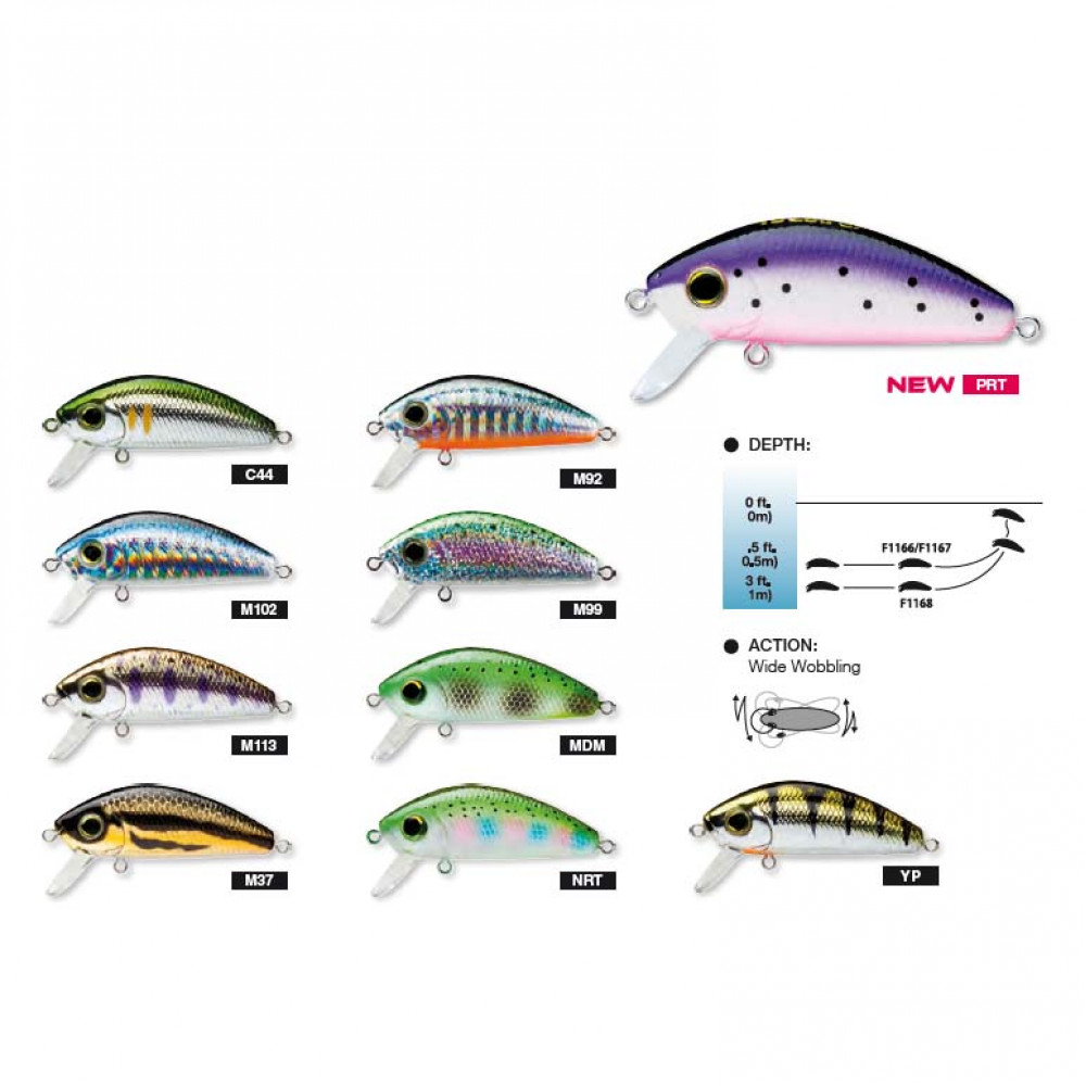 Малък по големина воблер, изключително подходящ за кастинг, може да се води и на туичинг. Има сравнително голямо тегло и с лекота се постига далечина и точност на замятане. Много подходящ за костур, распер, пъстърва, кефал и др. Има много интензивна и естествена игра, с холограмни окраски и реалистични 3-D очи. Резултатен както в течащи води, така и в затворени водоеми. Сглобен от възможно най-добрите компоненти и оборудван с много здрави и остри тройни куки.