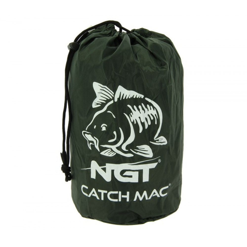 Лекото и водоустойчиво яке за дъжд NGT Green CatchMac е проектирано да се носи при дъждовно и влажно време. Неговият маслено зелен цвят и качулка също са идеални за дъждобран. Якето има два странични джоба, еластични ръкави и се предлага с калъф за лесно съхранение и заема минимално пространство. Якето е 100% водоустойчиво и изключително леко. То има дискретен капак в джоба с цип на гърба на яката, ако имате нужда от него, както и еластични ръкави, за да се сведе до минимум водата, която се стича от вътрешната страна на ръката ви, и тя идва в стилна и малка торба.